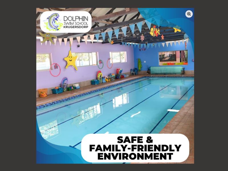 Dolphin Swim School is situated on the corner of Emdon & Frederick Cooper Drive (across from Kenmare Primary School), Kenmare Krugersdorp. We provide a fun environment for children with qualified and bilingual Swimming Instructors. Water safety is our priority before we develop their stroke technique; children are taught in a gentle and friendly manner. We follow the Swim South Africa (SSA) accredited and Swim Dynamics programs all the instructors are qualified Learn to Swim (LTS) instructors. We do offer adults LTS lessons and Aqua aerobics for ladies. We have a heated indoor pool, change room facilities, a viewing area for parents to watch lessons and safe parking. We stay open throughout the year except for a winter break in June/July and the festive season in December.