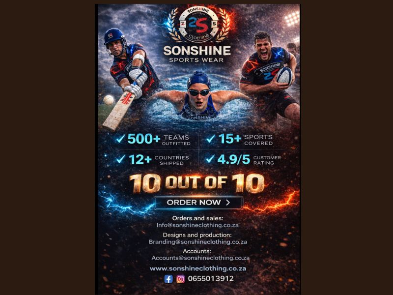Sonshine clothing πΏπ¦ *Gear up with fully sublimated performance based sportwear for schools, teams & clubs π‘οΈ*Supplier of all school, PPE, corporate & hospitality clothing.